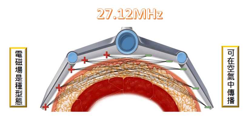 - 利用電波能量創造電場,在無需接觸身體的狀況下,
